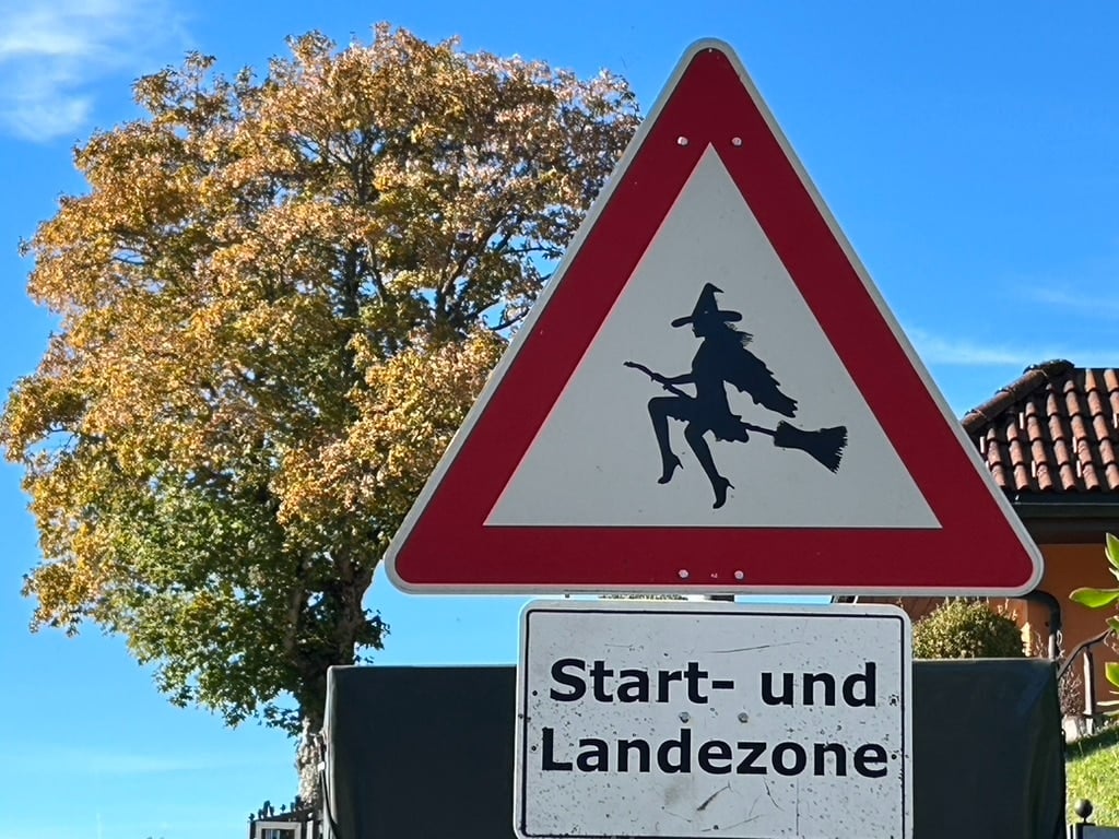 « Zone de décollage et d’atterrissage ». En sortant de la pension qui m’hébergeait, durant un récent séjour dans un paisible village de la Forêt-Noire, j’ai été intrigué par cet improbable avertissement sur un petit chemin pentu. Il était surmonté d’un panneau de signalisation montrant une sorcière au chapeau pointu chevauchant son balai. Avais-je donc atterri (c’est le cas de le dire !) dans un village de sorcières ? Renseignements pris, on rencontre de tels panneaux non officiels et sans valeur réglementaire dans quelques régions de l’Allemagne où restent vivaces des légendes de sorcières.